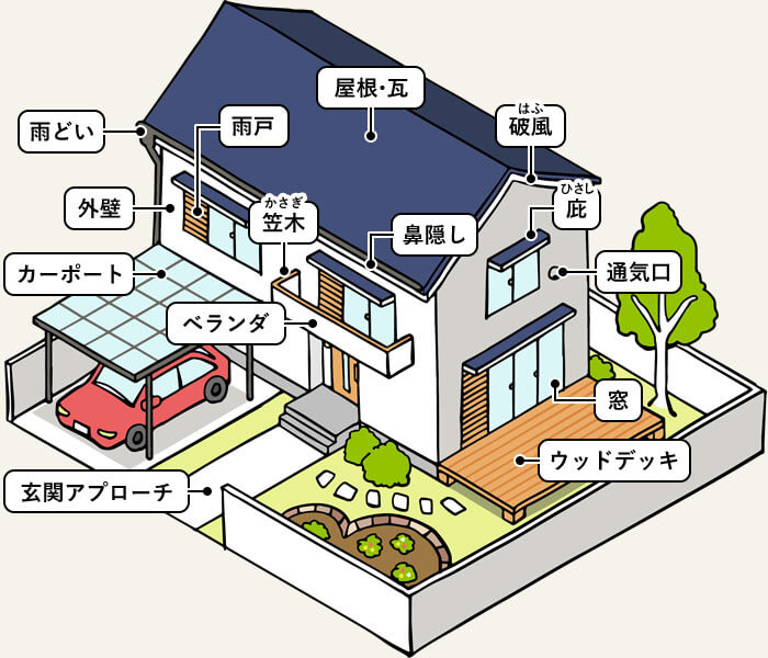 自然災害によってご自宅が被害を受けた場合、様々な箇所が火災保険支払いの対象になる可能性がございます。
